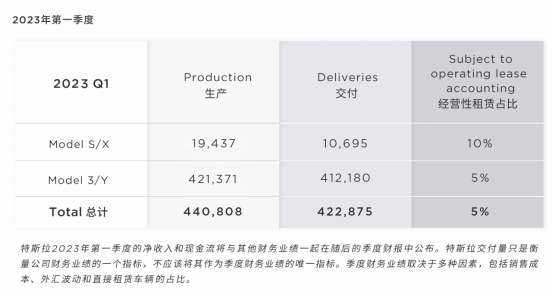 北京时间4月3日,特斯拉发布的最新数据显示,今年第一季度,特斯拉在全球累计生产电动车约44.08万辆,同比增长44.3%;累计交付新车约42.29万辆,同比增长36%,打破了特斯拉单季度的交付纪录。