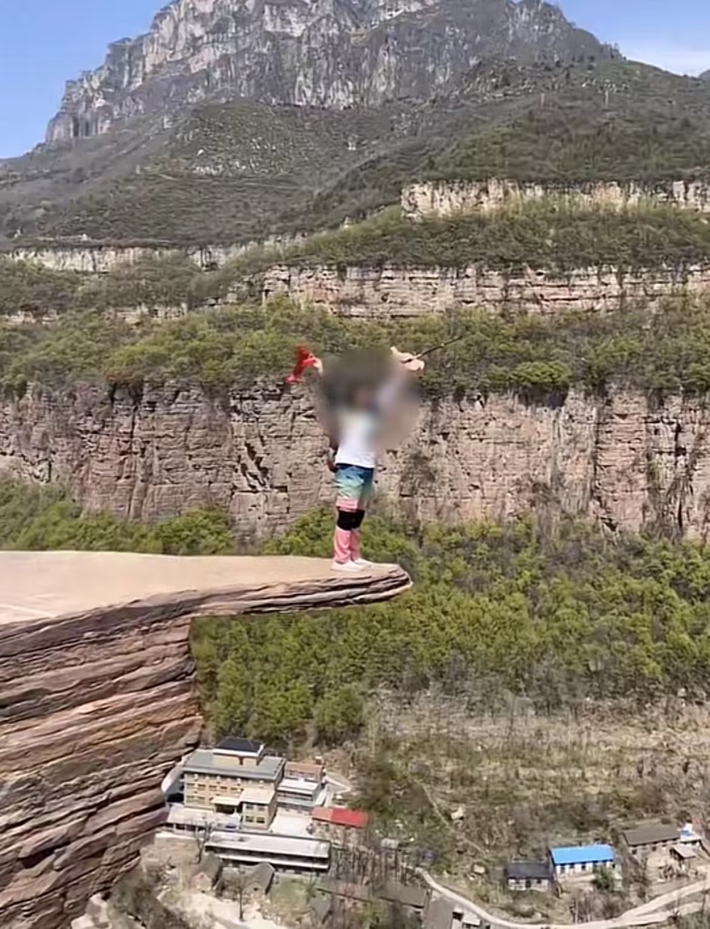 4月11日上午,合涧镇政府工作人员告诉北青报记者,这块试胆石并非正规的售票景区或景点,只是从悬崖上伸出来的一块石头,此前因石头出现裂缝,镇里和村里已经设置了安全提示牌,提醒游客不要靠近,但仍有游客上去拍照。因为担心游客上试胆石拍照出意外,为消除安全隐患,当地目前已将试胆石砸了,“试胆石没了,游客也上不去了。”