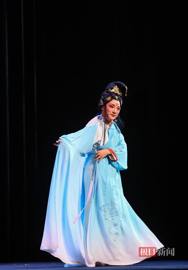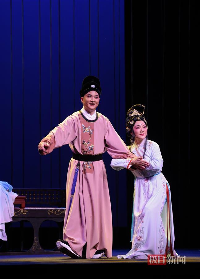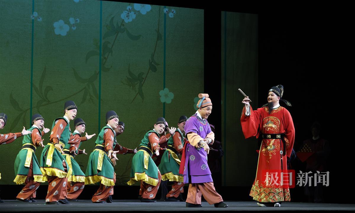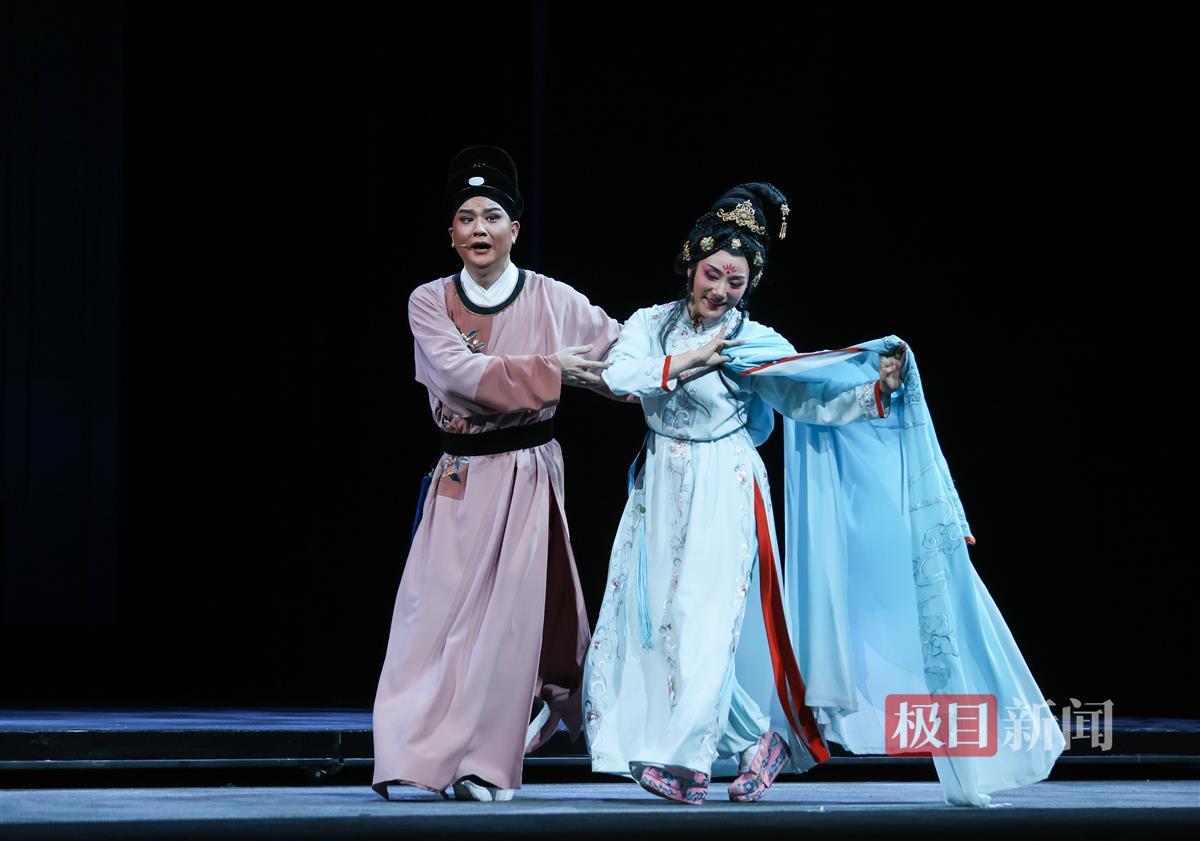 当“乡野的风”与诗意人文气质相遇,黄梅戏的舞台会诞生怎样的新鲜体验?15日晚,由湖北省戏曲艺术剧院创作排演、国家艺术基金2023年度大型舞台剧和作品创作资助项目——黄梅戏《舞衣裳》登陆湖北戏曲艺术中心首义剧场首演,极目新闻记者注意到,该剧不仅在唱词里融入了诗词,唱腔里也融入了《春江花月夜》的旋律。
