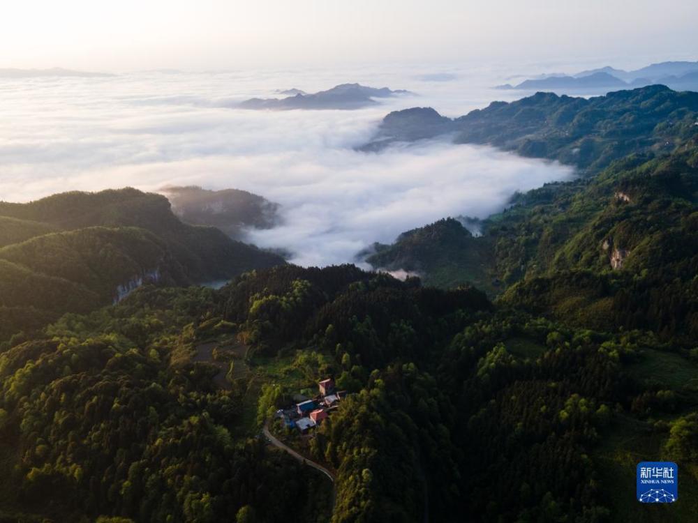 这是4月19日拍摄的金佛山云海景观(无人机照片)。新华社记者 刘潺 摄