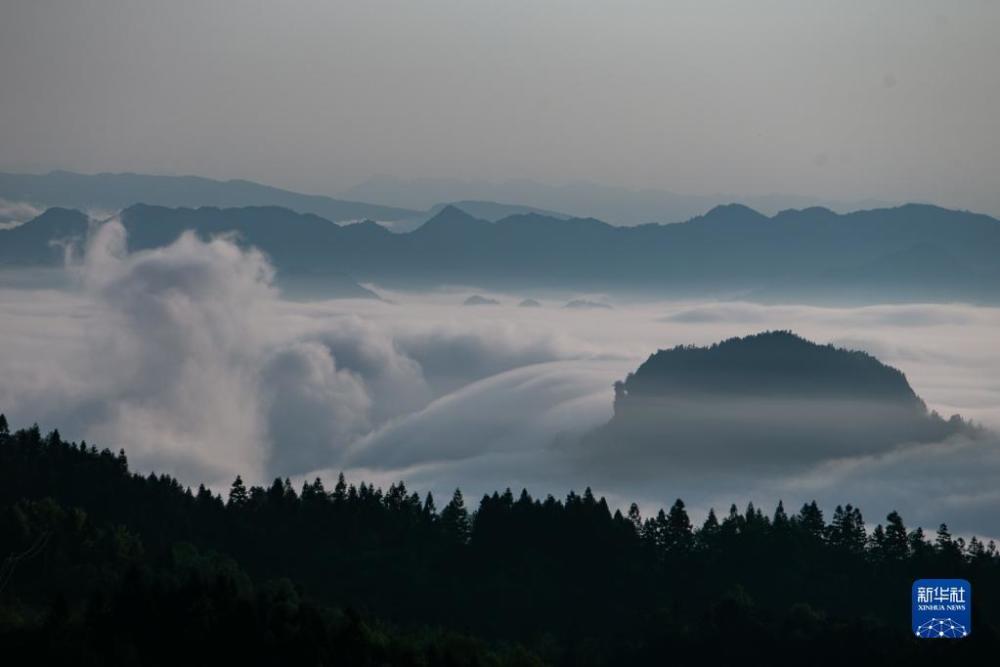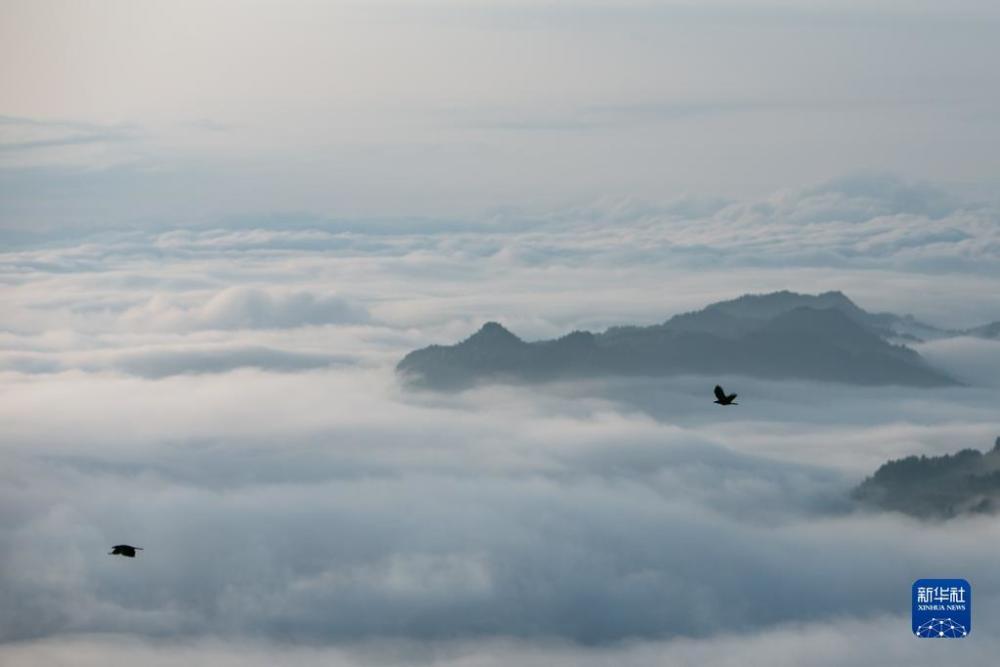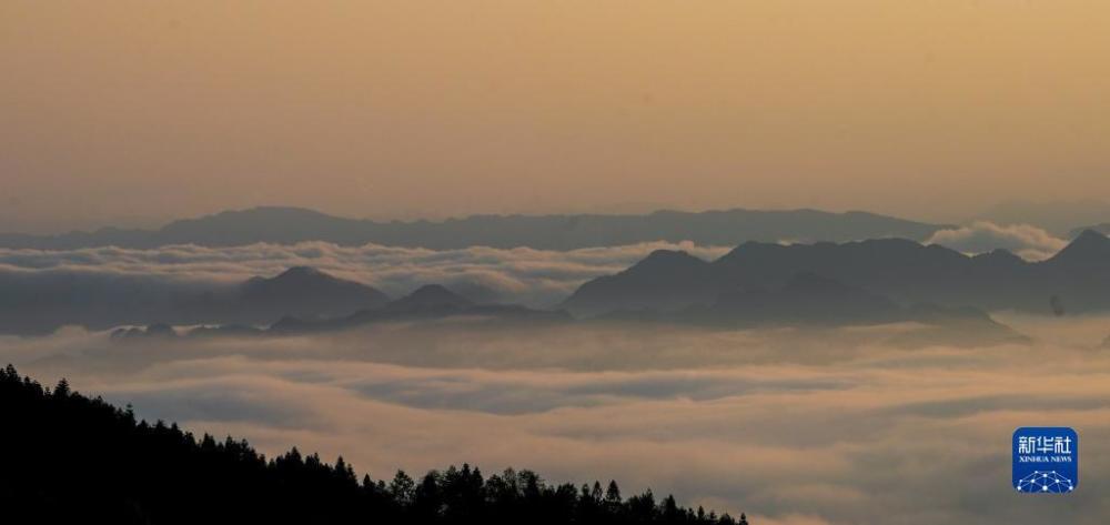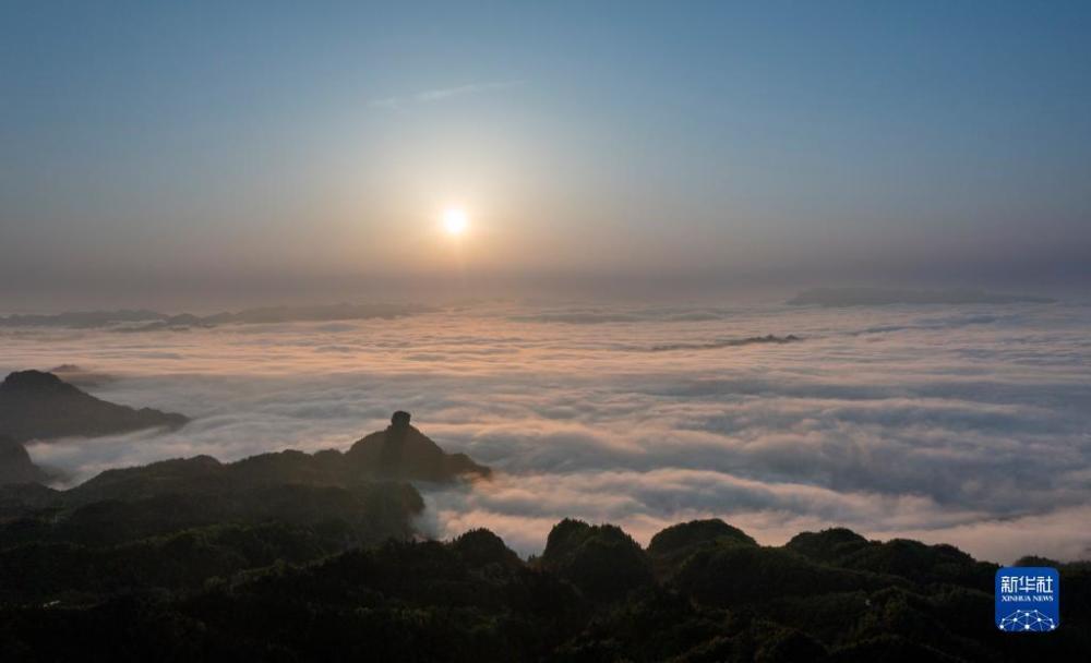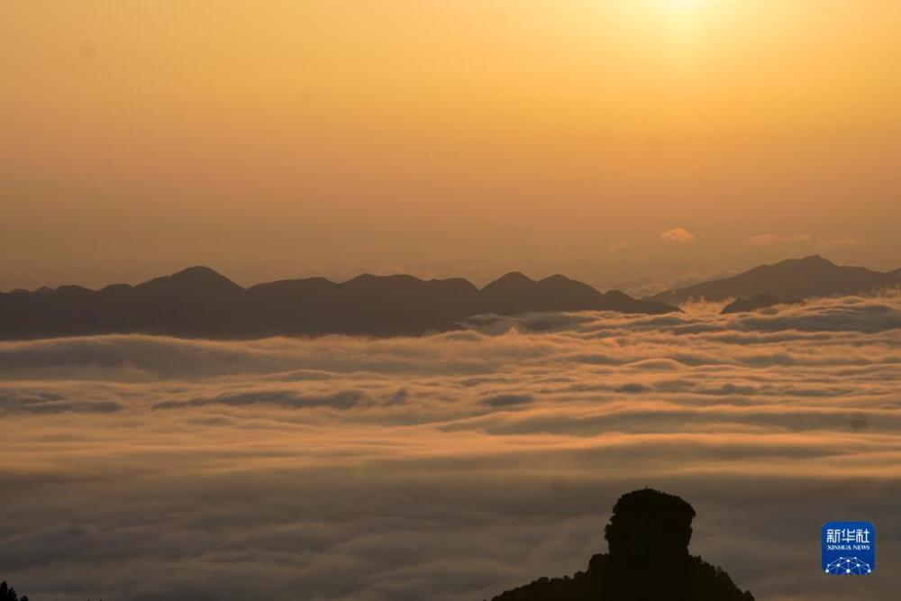 这是4月19日拍摄的金佛山日出时分的云海景观。新华社记者 刘潺 摄