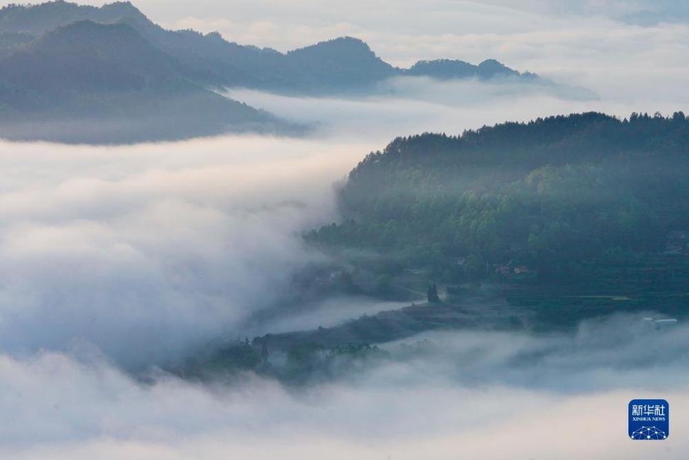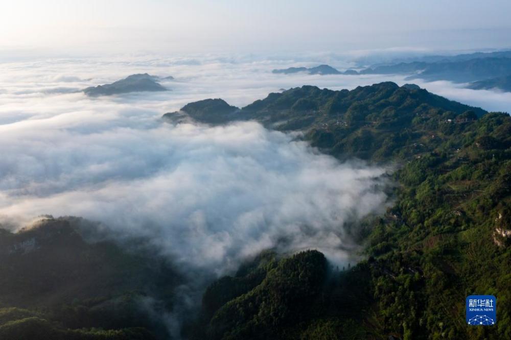 这是4月19日拍摄的金佛山云海景观。当日,位于重庆市南川区的世界自然遗产地金佛山雨后放晴,山间升腾起的水汽汇聚成云海在山峦之间流淌,美不胜收。新华社记者 储加音 摄