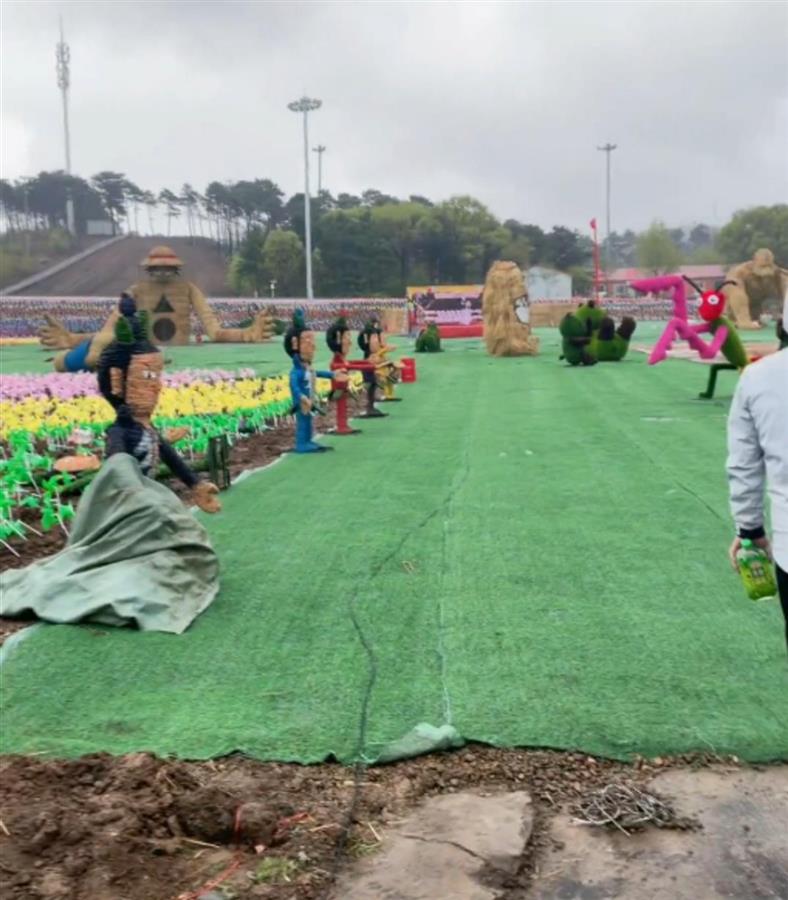 关于游客提出场地和稻草人太敷衍一事,该负责人称,此项目有上百万的投入,规模约2万平方米,近100个稻草人,他们暂时没有接到游客的投诉。