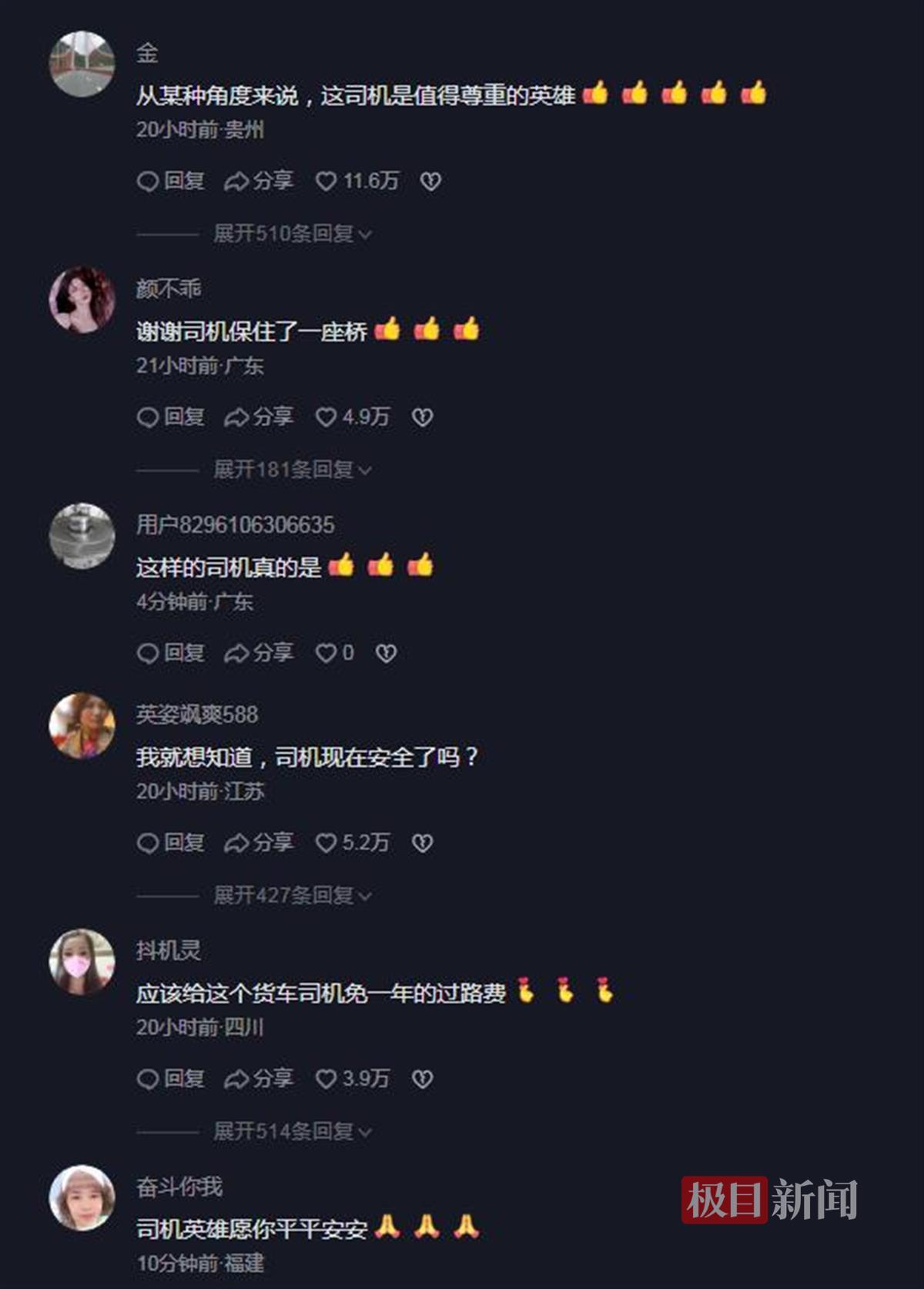 网友“奋斗你我”:司机英雄,愿你平平安安!