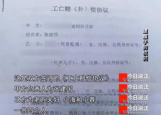老万称跟对方谈判时,小蓉根本没有说她怀孕。正因如此,《工亡赔偿协议》里涉及的赔偿人只有四个,并不包括后来出生的萌萌。