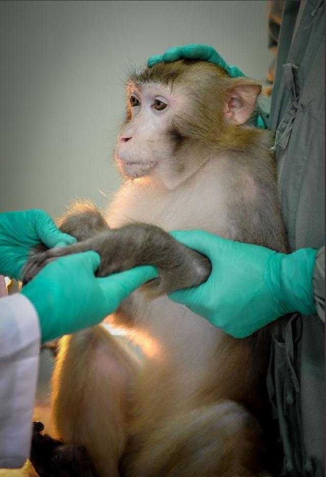 科研人员正在检查一只实验猴的生理指标。新华社记者刘大伟摄