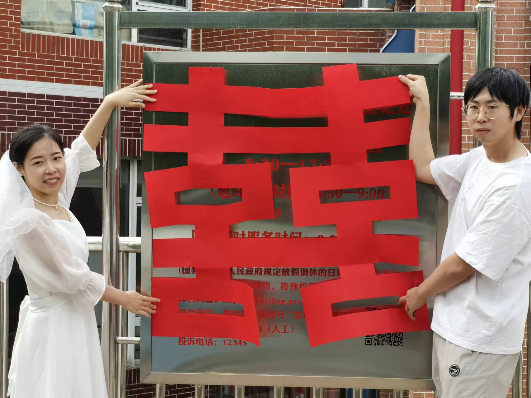 婚登现场的很多细节也让前来领证的新人感到十分温暖。对于一些早到的新人,婚姻登记中心打开等候房间;有的新人不愿意进房间等待,民政部门则在门口撑开遮阳伞,让新人在开放环境中也不会太晒。东城区婚姻登记事务中心副主任赵丽介绍,登记服务午间服务不间断,工作人员将采取轮流上岗的方式,方便新人们办理。“虽然今天来领证的新人很多,但我们会根据需求推迟下班时间,只要预约上的新人,就一定会让大家满怀幸福而来,怀揣满意而归。”