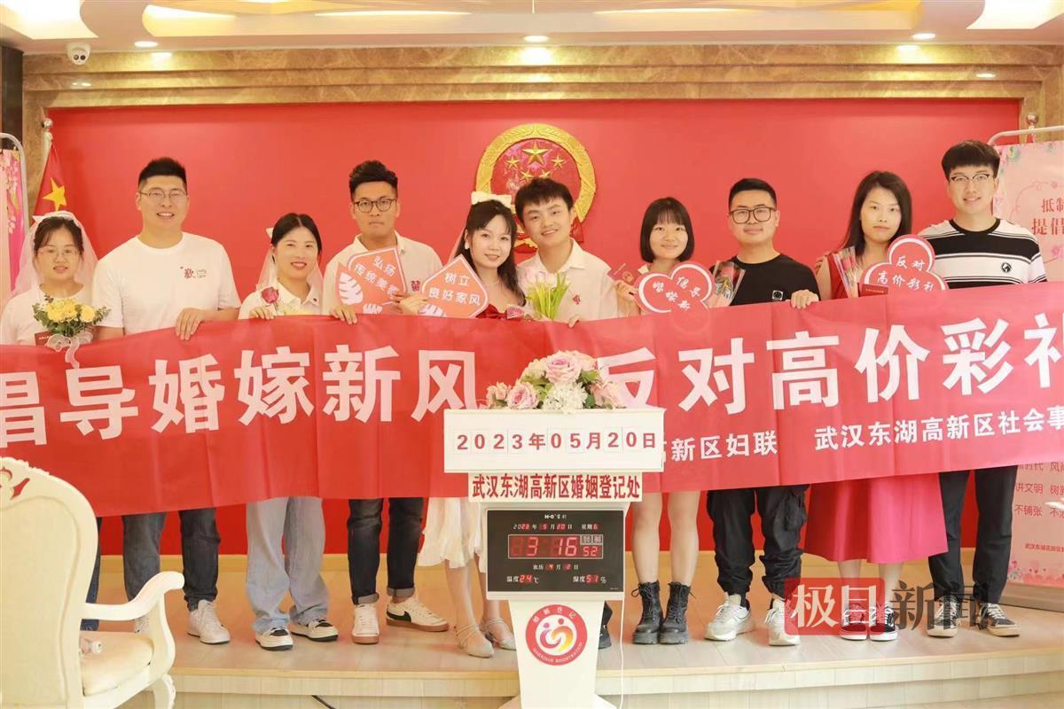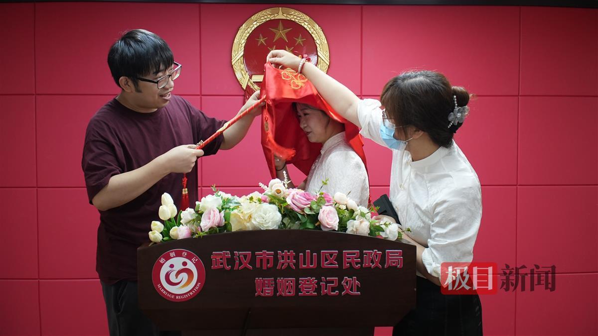 因谐音“我爱你”,5月20日成为了新人结婚登记的高峰日。极目新闻记者了解到,今年“520”虽然是星期六,但武汉市各婚姻登记处正常开放,从上周开始,预约、咨询的电话就非常火爆。当天,全市共办理结婚登记4261对,洪山区办理结婚登记最多,为491对。