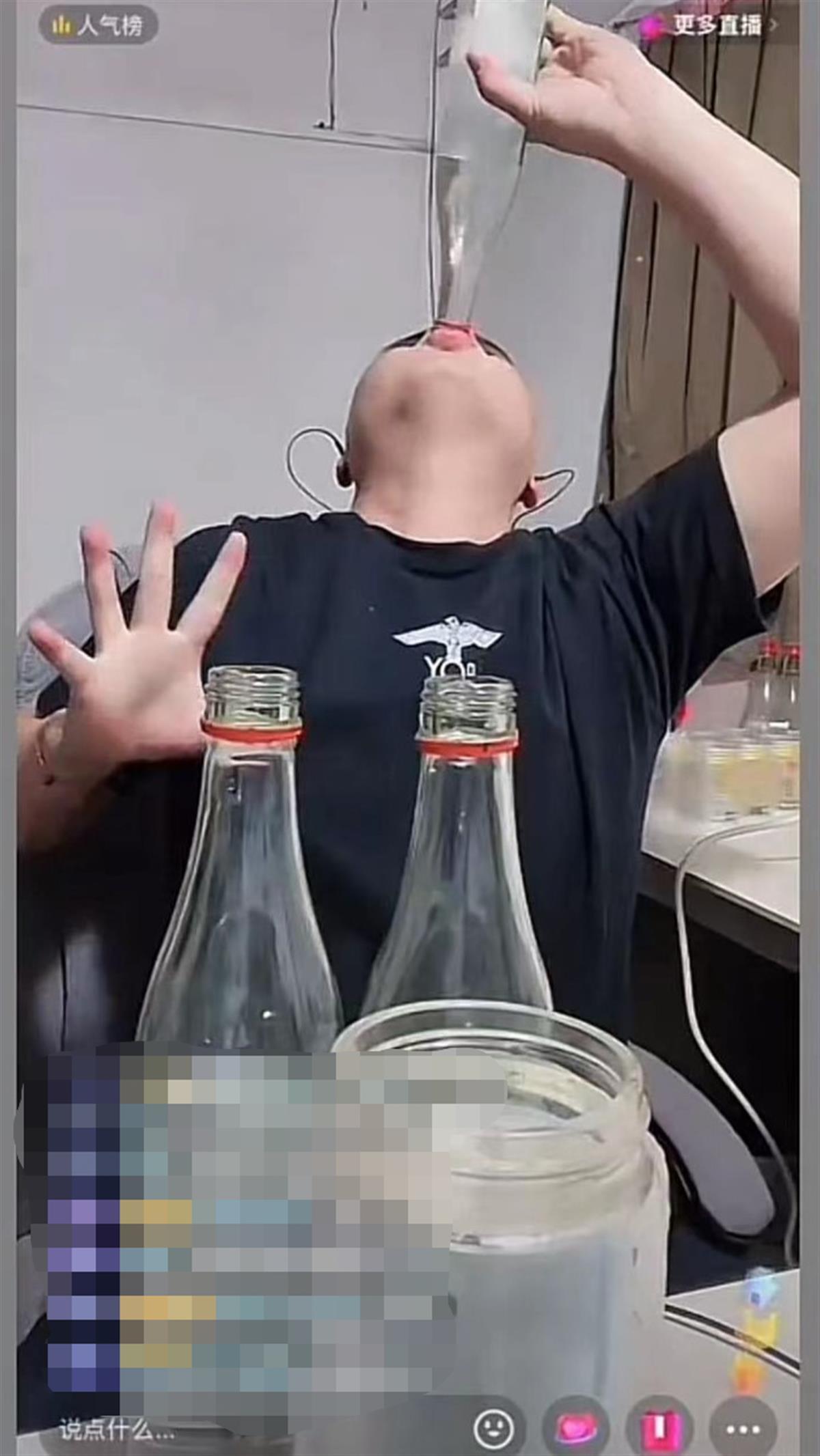 据上游新闻报道,5月20日下午,一名博主开直播回顾了“三千哥”去世前那一场PK过程:“他一共打了4把PK,第一把打了1个(即1大杯白酒),第二把打了2个外加3个红牛,第三把没输,第四把输了4个。”也就是说,“三千哥”这场直播喝了一共喝了7大杯白酒加3瓶红牛。记者在视频中看到,“三千哥”是把瓶里的酒倒在大杯子里喝。