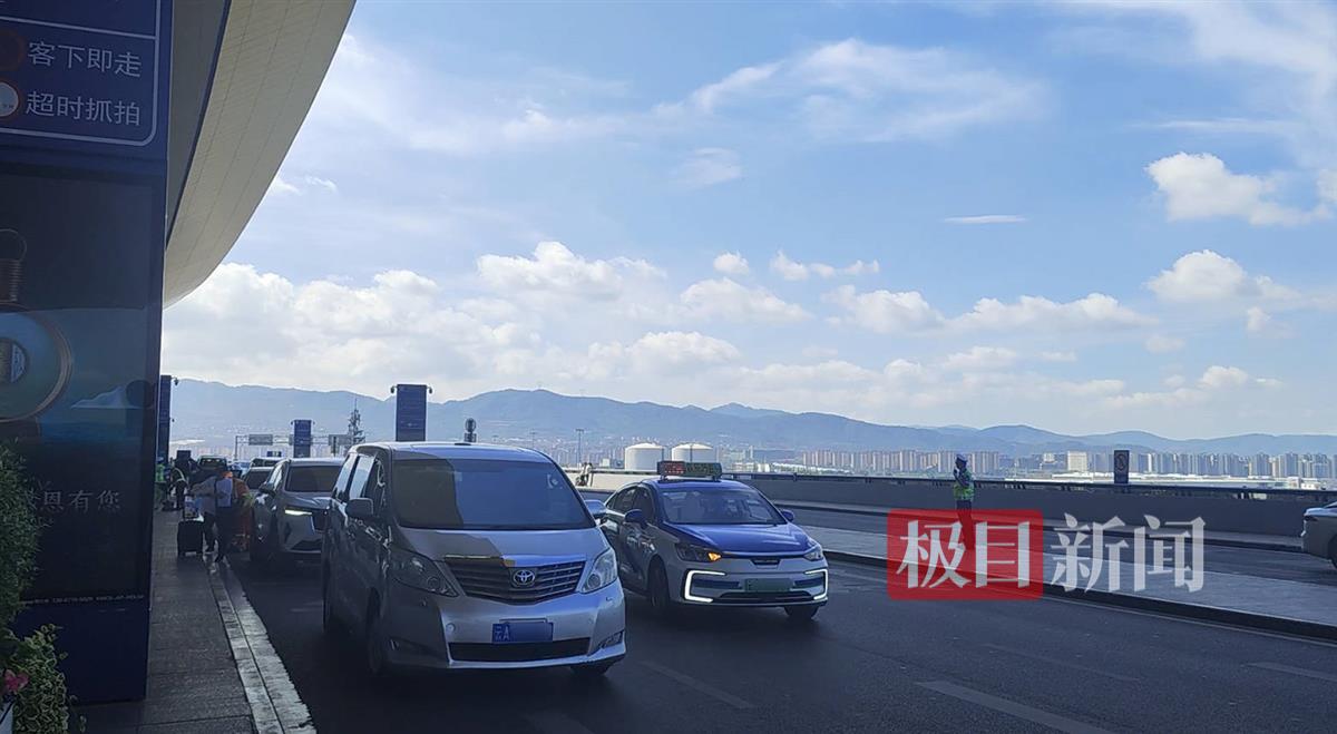 3日上午,极目新闻记者来到昆明长水机场出发层,道路上车来车往,不时有车辆停靠在路边,有乘客下车取行李。