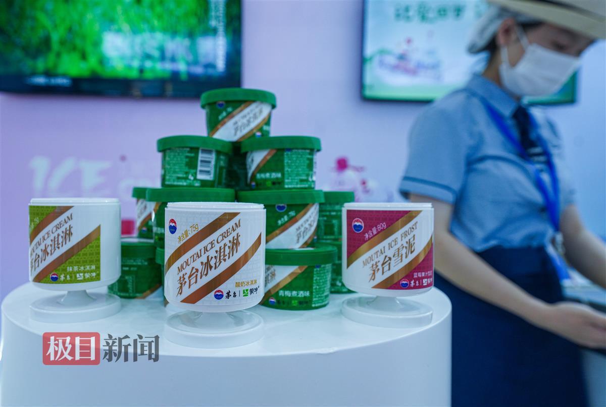 “冰淇淋一共有6款,每款都加入了少量53度飞天茅台,您可以品尝一下。”该展台工作人员边介绍,边从冰柜里补货,“不过因为含少量酒精,吃完建议不要开车哦!”她提醒道。