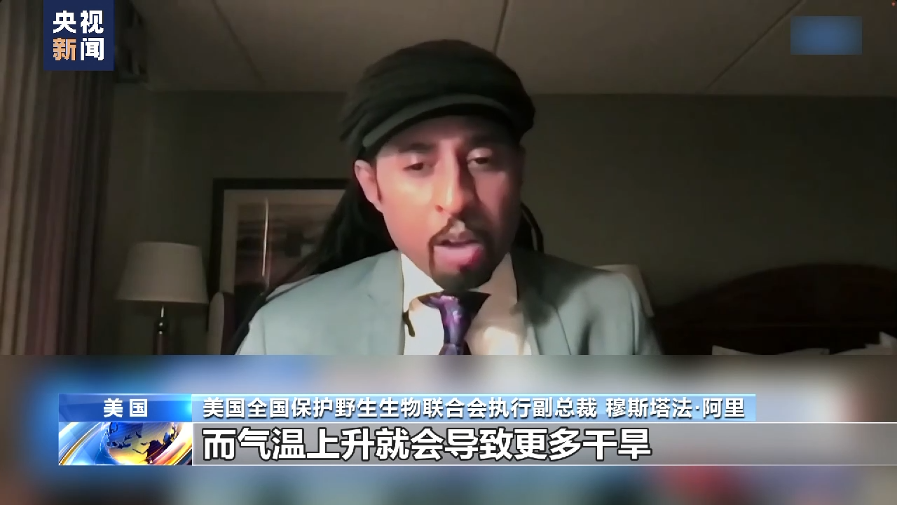 美国全国保护野生生物联合会执行副总裁 穆斯塔法·阿里:气温正在上升,而气温上升就会导致更多干旱,我们正在讨论野火,那么更多干旱会造成起火。