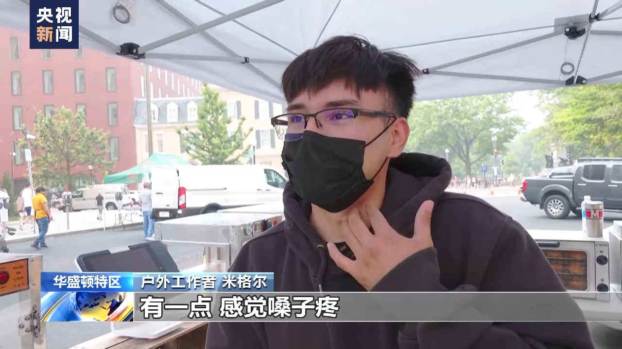 华盛顿户外工作者 米格尔:挺困扰我的,因为我有哮喘,我得戴上口罩,还得继续户外工作。感觉嗓子疼。