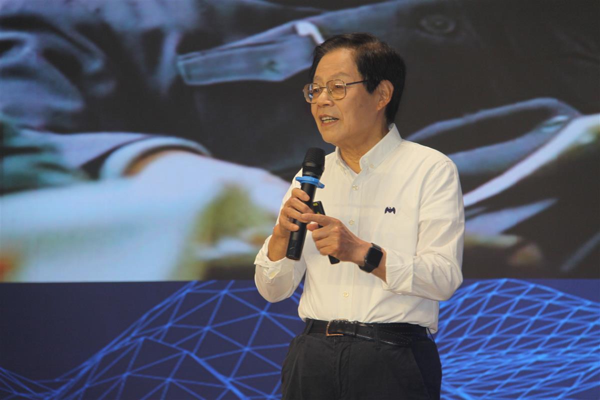 随后,樊明武院士讲述了自己的求学、科研和管理的经历。他告诉同学们,在钱三强院长的影响下,自己一直坚持“红专矢量论”的治学和研究路径。“红”指爱国主义情怀,是矢量方向;“专”指为人民服务的本领,是矢量模;“横轴”则是人类前进方向。