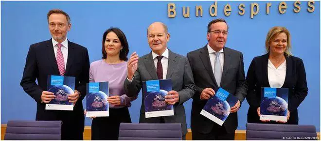 朔尔茨与四位内阁成员介绍德国的首份国家安全战略
