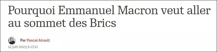 不过,种种迹象表明,法国目前对华姿态也是相当积极。当地时间6月12日,法国《言论报》称,法国总统马克龙有可能在今年8月参加在南非举行的金砖国家领导人峰会。