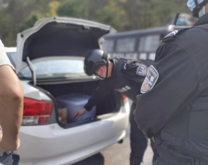 流动查缉大队的缉毒警察正在查验来往车辆。