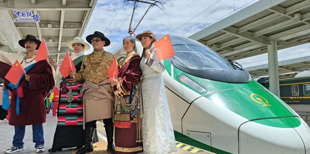 一大早,站台上就人潮涌动,不少藏族同胞换上节日盛装专程赶来体验首发列车。大家纷纷驻足,和复兴号合影留念,共同见证和欢庆青藏铁路这一重要时刻。