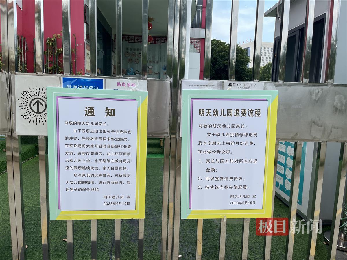 在明天幼儿园旁,一位小区居民告诉极目新闻记者,幼儿园曾于两年前易主,今年年初,园方因经营不善倒闭,前段时间因退费和学生分流等问题,该园家长曾来此与园方协商。除家长的费用外,该园还拖欠了园内部分老师的工资。