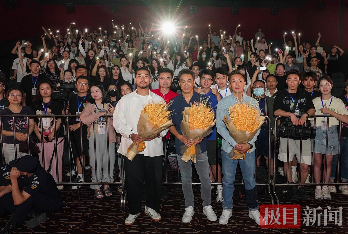 “十年扫毒,最强一战。”7月4日,电影《扫毒3:人在天涯》剧组来汉路演,影片男主角刘青云带着片中的两位“小弟”刘浩龙、苏宸褕与江城影迷相见欢。一位武汉观众贴心地带着热干面和青菜来“追星”,收到礼物的“买菜市民刘先生”则仔细看了看青菜,专业地夸了一句“不错啊”。