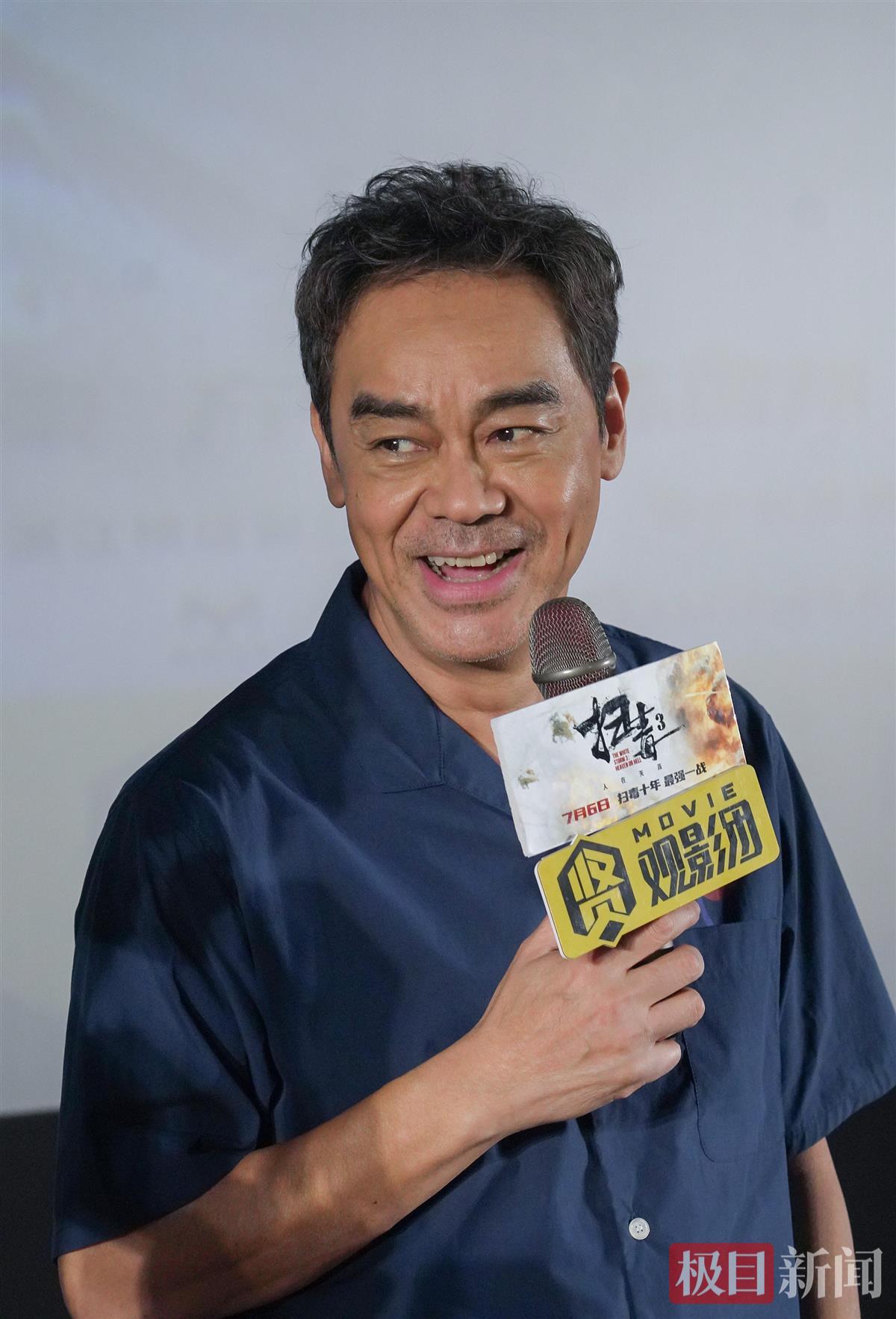 刘青云、刘浩龙、苏宸褕也对《扫毒3》中的动作场面印象深刻,并感慨如今的警匪片为演员提供了更多的发挥空间。刘青云举例说,以前警匪片的主角似乎都面临一种限制,“主角都要很严肃、很正、要一表人才。但现在不是了,你看我,根本就不是一表人才的……”