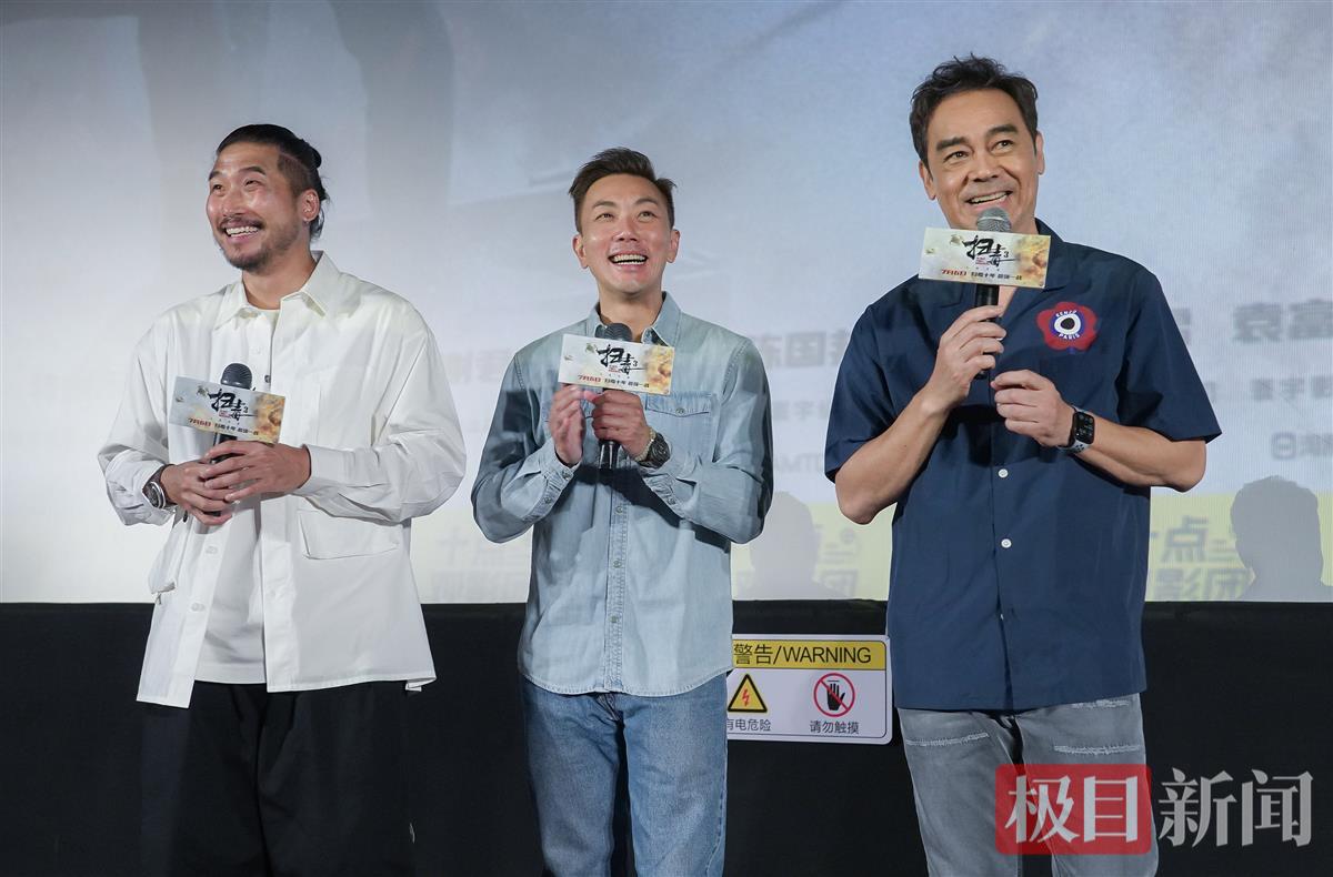 值得一提的是,《扫毒3》剧组还邀请了湖北网络大V“孝警阿特”参加见面会。这位在短视频平台拥有数千万粉丝的警察博主盛赞刘青云的演技,称他演的毒枭“心狠手辣、丧心病狂”,让他“职业病犯了”,想把刘青云“抓”起来。刘青云闻言也附和道,“那《扫毒4》没有我了,我被‘抓’了。”