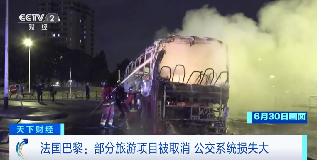 巴黎所在的法兰西岛大区运输联合会7月3日表示,仅在巴黎公共交通系统,连日来的骚乱就造成至少2000万欧元(约合1.58亿元人民币)的损失。当地有约40辆公交车被烧毁,部分路段的电车轨道被破坏。