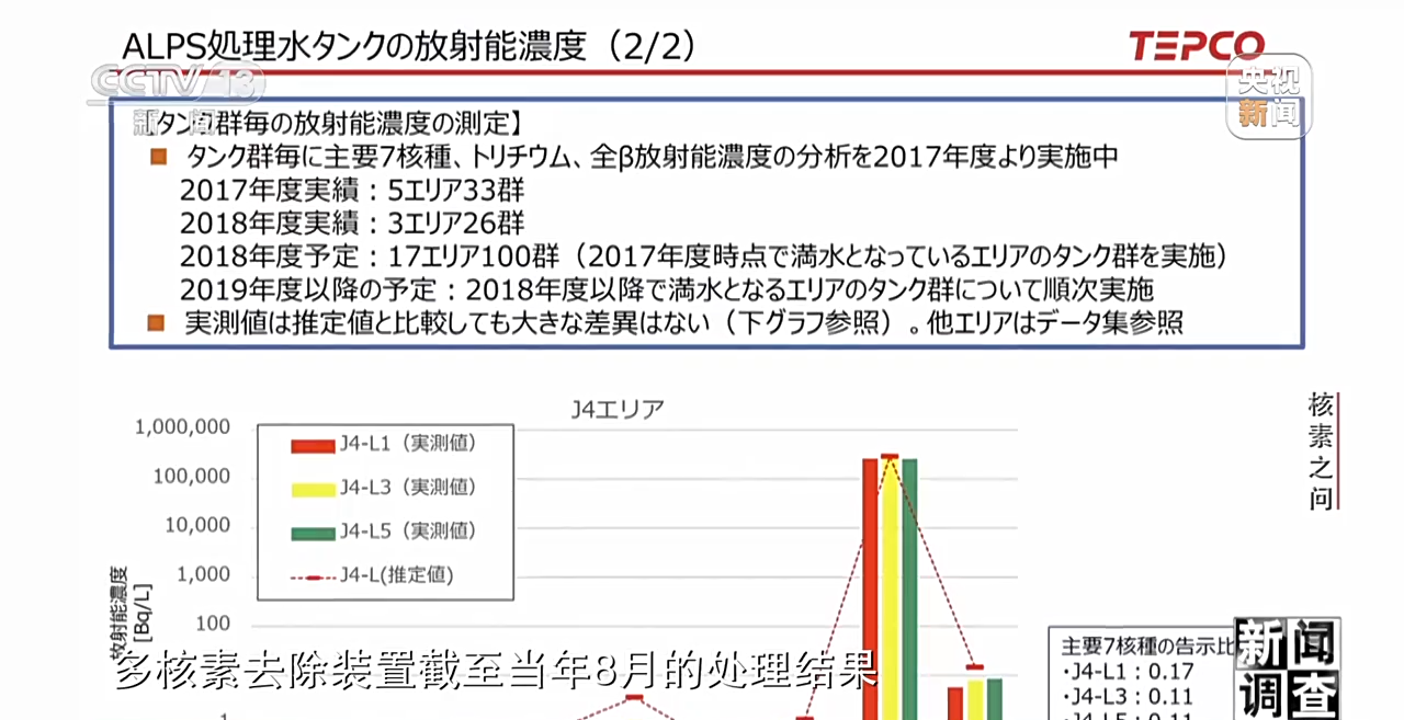 迫于舆论压力,2018年,东京电力公司第一次向社会公开了多核素去除装置截至当年8月的处理结果。