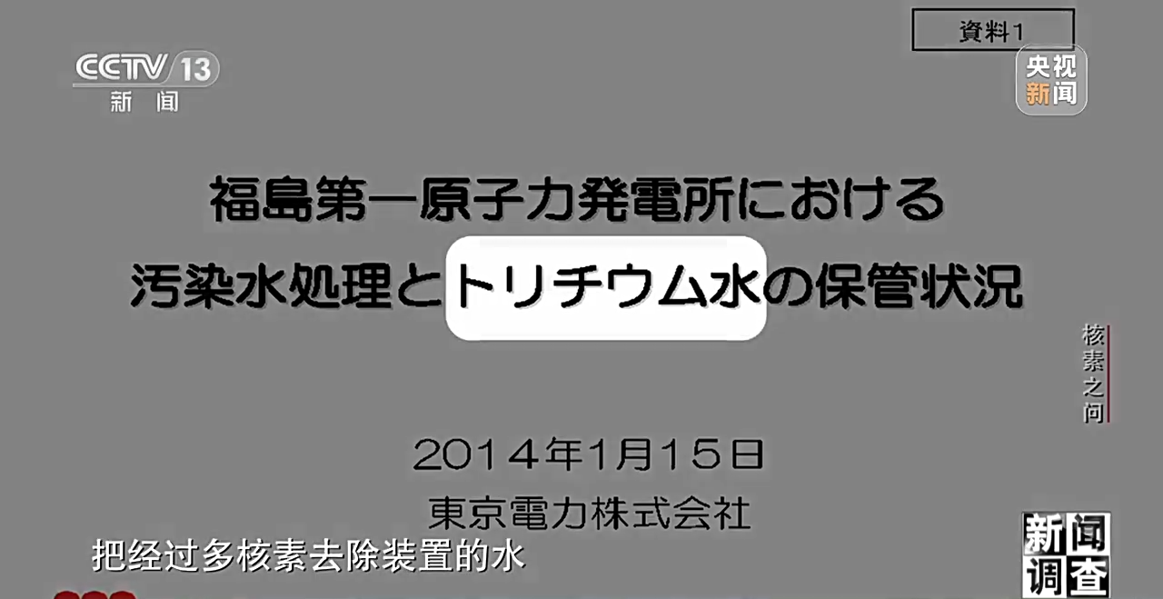 天野光:污染水追根溯源是来自核燃料残渣,残渣中含有1000多种核素。这些核燃料残渣与水接触后,很多会溶于水中,这是显而易见的。