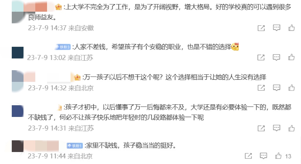 有网友表示不理解,认为家长目光短浅;也有网友认为人各有志,就业稳当能兜底也挺好。