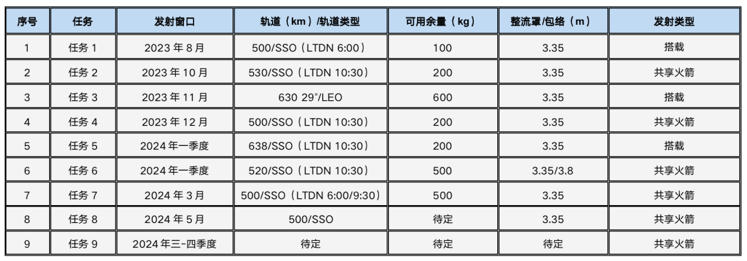 其实,不仅是这次参与竞拍的火箭提供商业搭载机会,在今年4月,中国航天科技集团发布了2023和2024年度运载火箭搭载和“共享火箭”发射机会清单,包括本次发射在内,共有9次发射任务,面向国际、国内市场提供长征火箭的“整箭发射”“搭载发射”和“组网发射”等不同方式的发射服务。