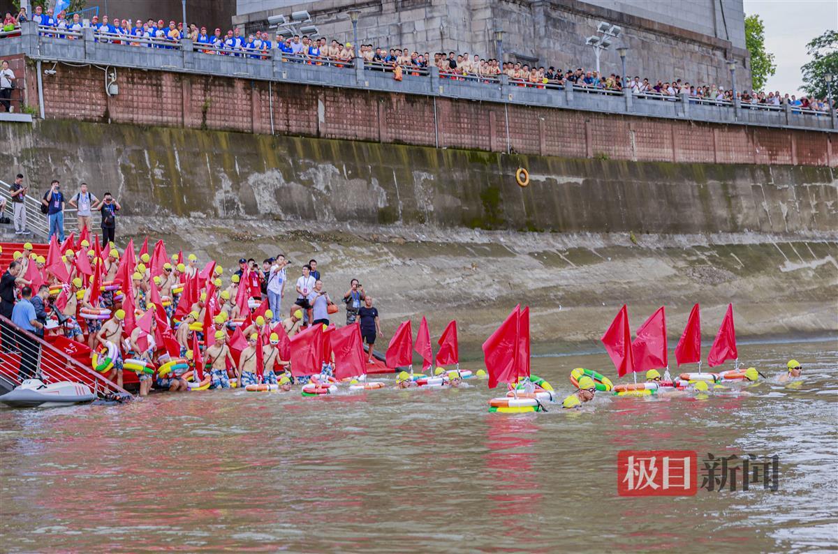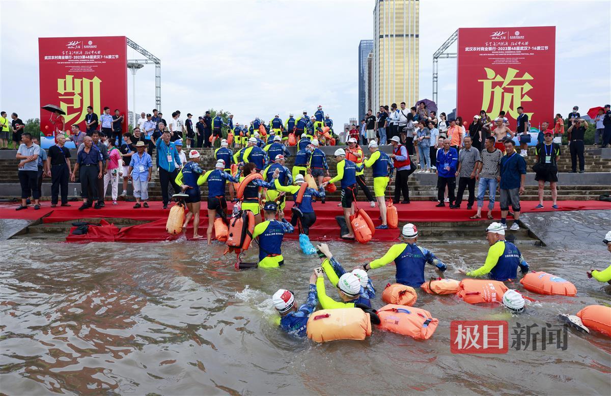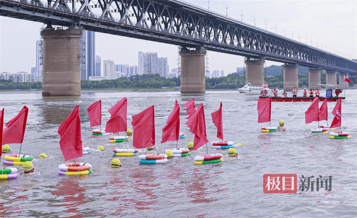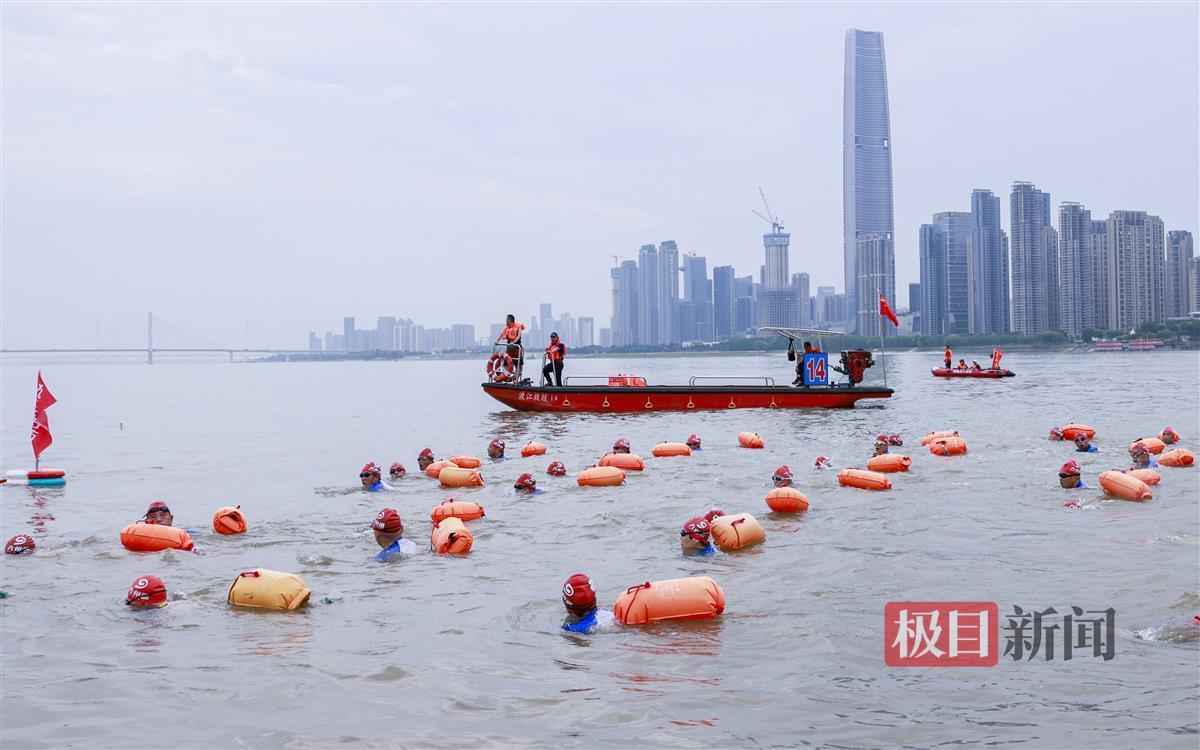 由武汉渡江节组委会挑选的6名专业游泳运动员参与了“抢渡”项目试渡,8:10,抢渡选手准时从武昌汉阳门下水,至汉阳南岸嘴起水,游程约1800米。
