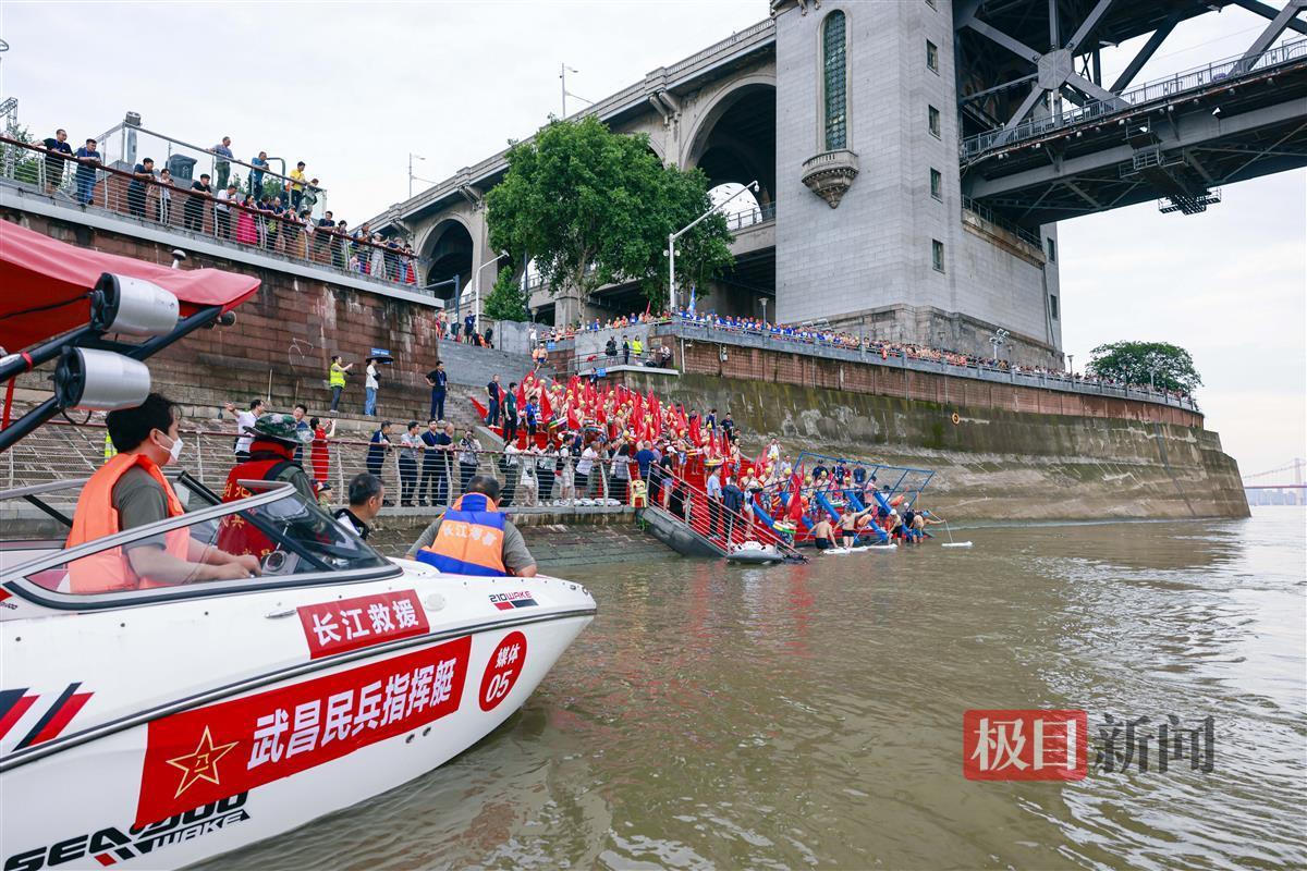 据悉,来自广东、山西、盐城、新乡、孝感等地参加本届武汉渡江节的外地方队中的19人,融入试渡江的6支方队参与了活动。