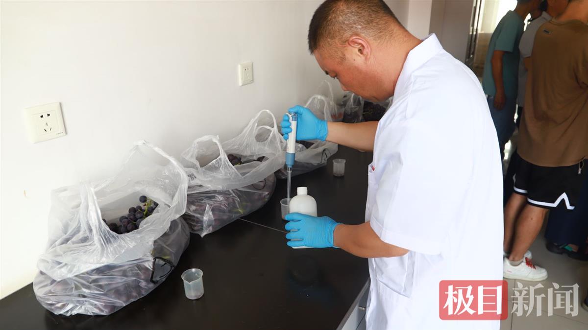 为了解本地葡萄的出产是否能够让人安全放心,7月11日,极目新闻记者随武汉市农业农村局来到田间地头,对在园葡萄进行抽样检测,总共73个检测项目的结果全部合格。