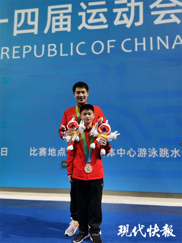 赛后,现代快报记者专访了王飞龙的江苏省队教练张骐,去年底,正是张骐把王飞龙送进了中国跳水队。据张骐介绍,王飞龙早在江苏省运会上就崭露头角,经过全运会的洗礼之后进入国家队中。他还透露,王飞龙在很小的时候就表达过个人的愿望和梦想——站上奥运会的舞台,斩获奥运跳水金牌。 年少成名!不满10岁就在省运会上连摘三金 跳水一直是一个上演年少成名故事的舞台,王飞龙也不例外。这个出生于2008年10月份的小伙子,本次世锦赛摘金时,还不满15岁。江苏省跳水队一线队教练张骐在接受现代快报记者采访时,讲述了王飞龙的跳水故事。
