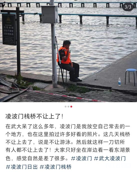 “栈桥不让上了,说是不让游泳,就这样一刀切,所有人都不让上了!”近日,多名网友在社交平台发文称去武大凌波门游玩时,发现栈桥前拉起了警戒线禁止进入。