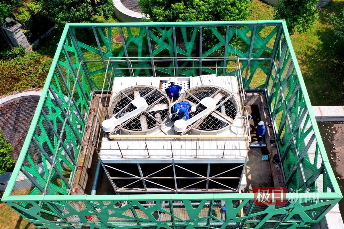 一台家用空调,供冷面积最多百余平方米,而庞大的地铁车站,供冷面积常常达到数千平方米,这样的空调机组又是如何维护的?入伏后,极目新闻记者来到武汉地铁螃蟹岬站,直击检修人员对车站空调的重要配套设施——冷却塔进行维保作业。