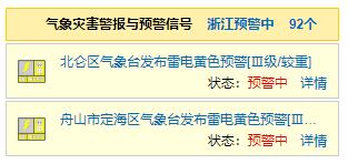 截止目前,浙江全省仍有92个气象灾害预警生效中。