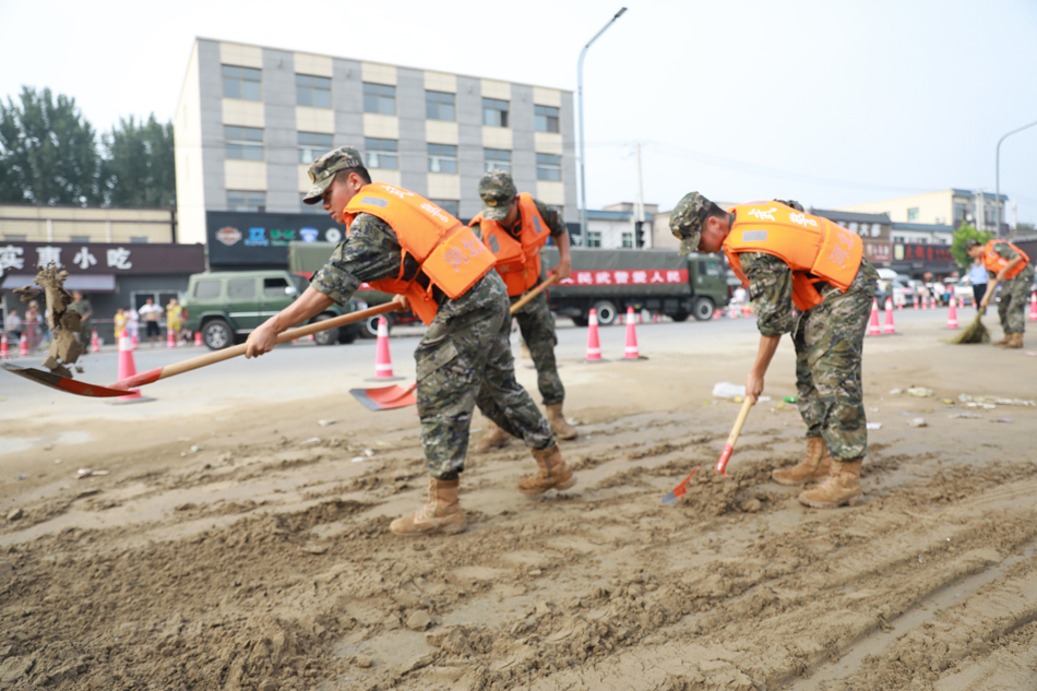 8月4日,武警官兵正在清淤。机动支队江腾摄