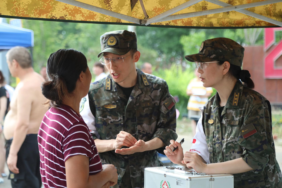 8月4日,军医正在为群众治疗病症。武警河北总队王红强摄