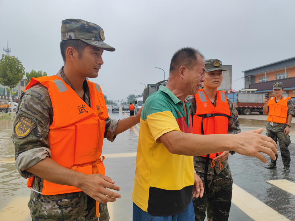 8月4日,官兵帮助老人撤离。机动支队赵佳亮 摄
