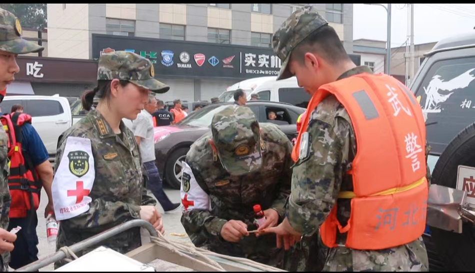 8月4日,武警河北总队官兵在河北涿州继续展开抢险救援,累计为受困群众运输物资1.6吨,搜救转移受困群众365名,已累计解救转移群众2190余人。抽调总队医院卫勤力量组成救援医疗队,派出医疗小组到救援一线巡诊,在救援交接处搭建医疗帐篷,开设便民医疗点,为救援人员和群众进行诊疗,分发药品,开展卫生防疫宣传,先后诊疗500余人次。