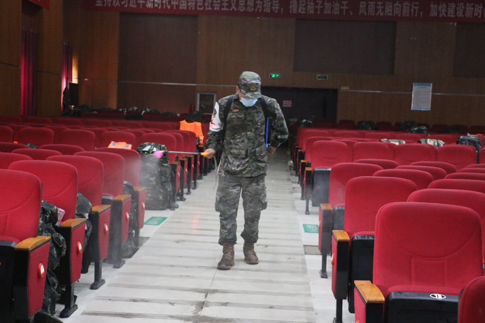 8月4日,医院卫勤军医消杀官兵休息场所。武警河北总队医院杨雪乾摄