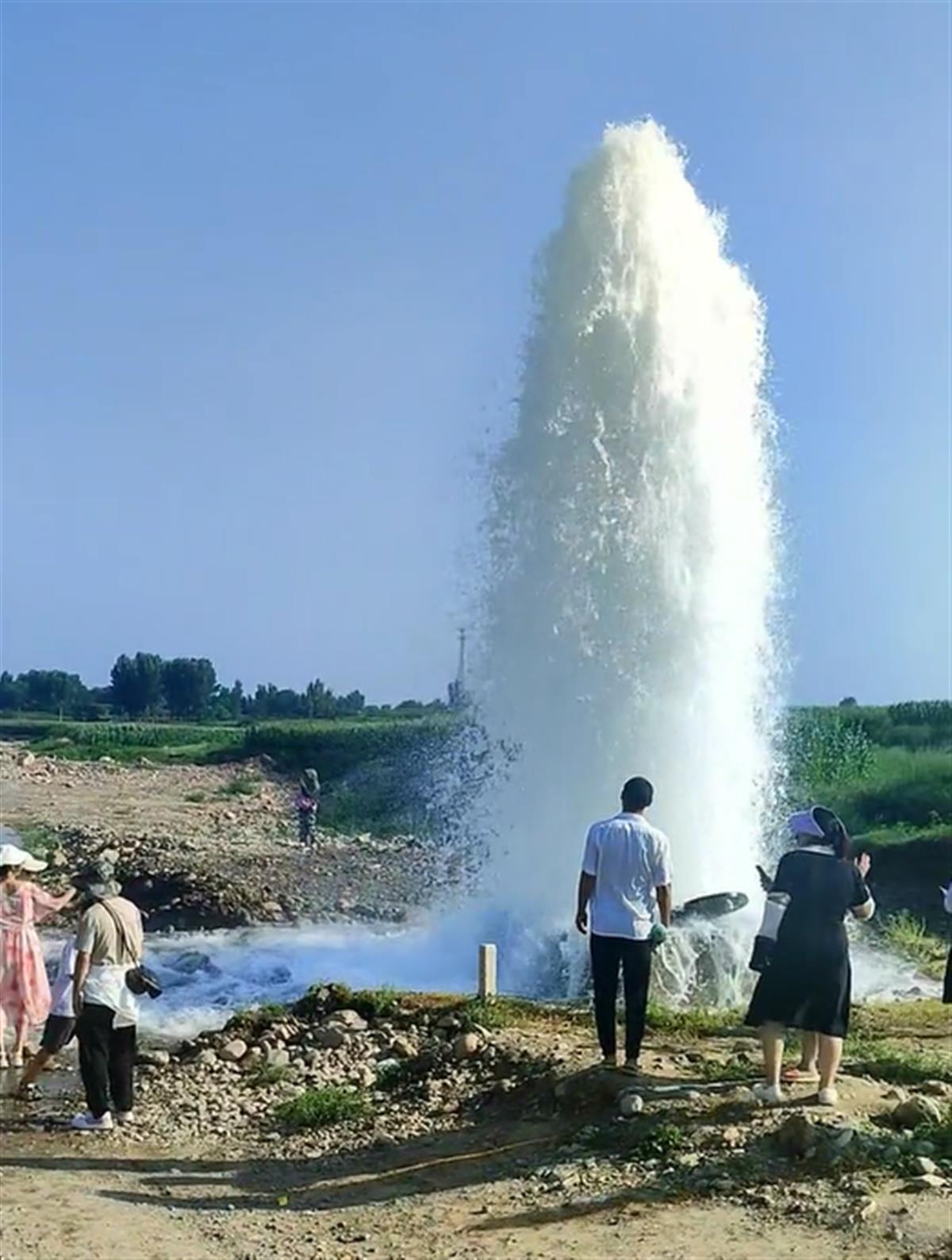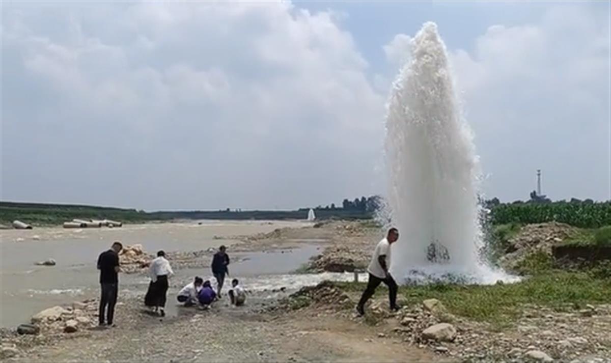 近日,多名河南卫辉市的网友发布视频称,当地安都乡口头村的沧河河道内喷出两股水柱,很是壮观,还有人专门过来拍照打卡。视频中,在开阔的河道内,两股水柱喷涌而出就像巨型的喷泉,两股水柱相隔百余米,有不少人在旁边拍照、戏水。有人称,这是大雨之后河道形成的天然喷泉,还有人猜测,这是不是地下水饱和了。有网友称,此前现场曾拉了警戒线,不让大家靠近这两处水柱。