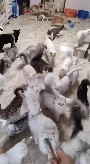阿廉在海南海口开了4年多的宠物店,一开始也卖活体宠物,自己也养猫养狗。4年多来,看到被主人遗弃的小猫小狗,阿廉都带回家养,随着被弃养的猫越来越多,阿廉养的猫从两三只增加到64只,狗也从一只变成3只。