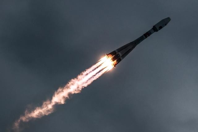 当地时间11日,载有“月球-25”号无人月球探测器的“联盟-2.1b”火箭在东方发射场点火升空。