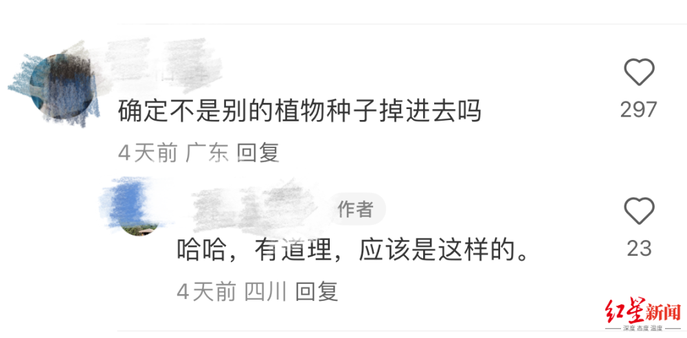 在图文下方的留言部分,记者也看到网友们云淡风轻地纷纷表示:多半是别的植物的种子掉进乌木缝隙后发的芽,就好比水泥墙壁的缝隙里也能长出植物一样。作者自己也比较认可这样的猜测。