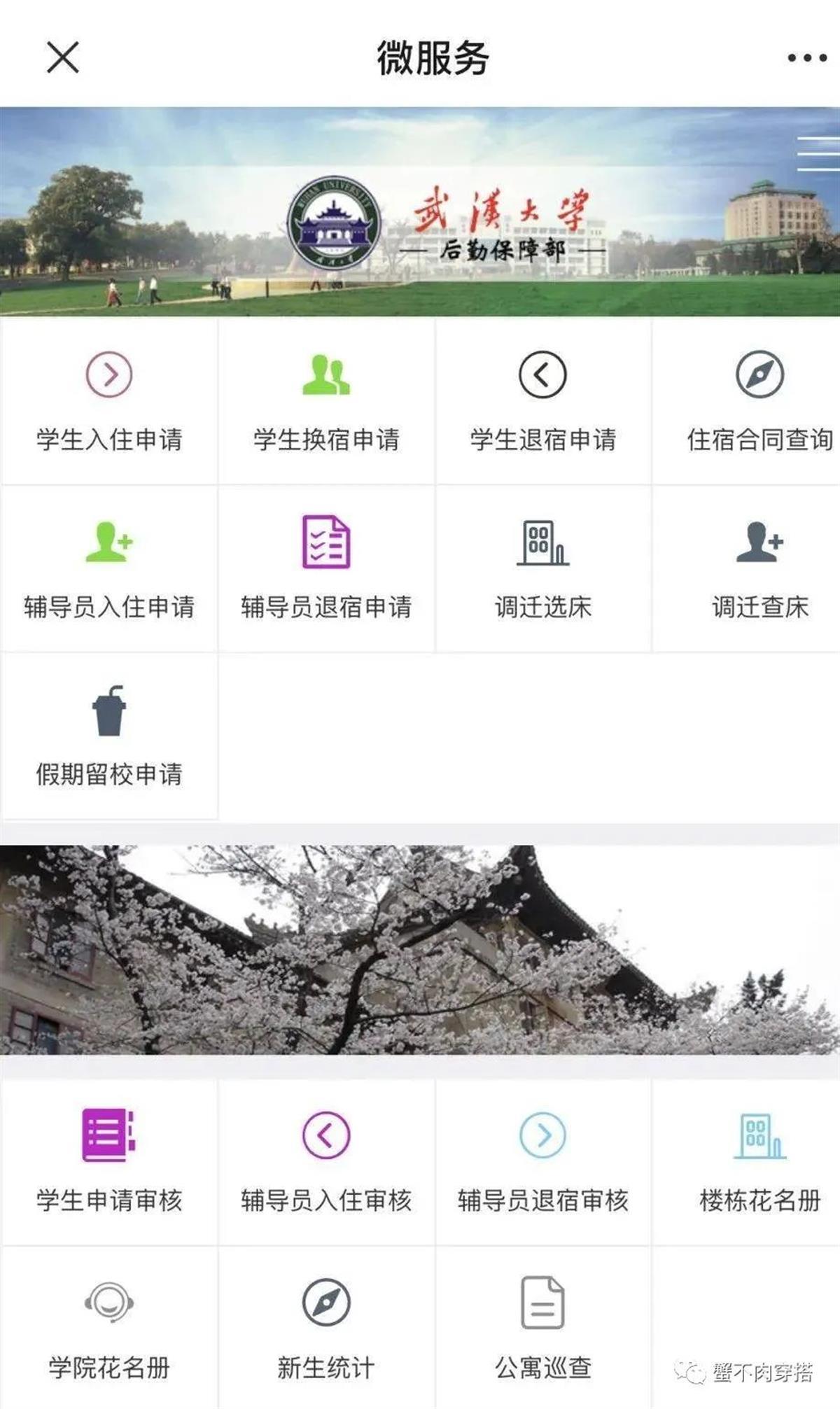 身高太高需要加长床吗?行动不便需要无障碍宿舍吗?武汉大学推出了“宿舍定制服务”,为不同类型的学生提供了个性化的住宿方案,如加长床、无障碍宿舍、夫妻合宿等。宿舍生活问题反馈,住、换、退宿等操作都可以通过“武汉大学学生宿舍服务”找到对应的反馈渠道。