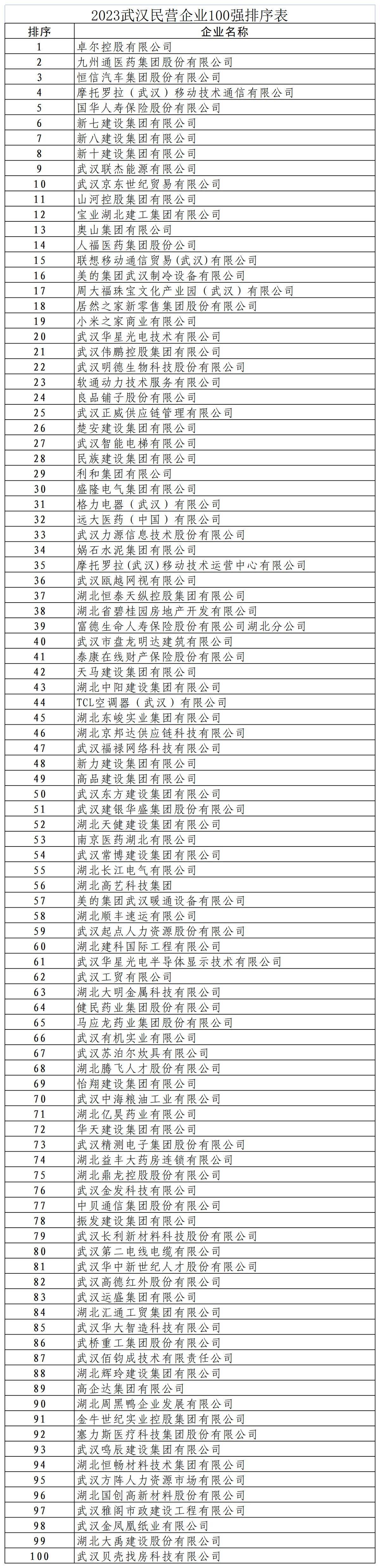近日,“泽平宏观”微信公众号发布《中国民营企业百强排行榜2023》,武汉共有3家民营企业上榜,分别是卓尔控股、九州通、恒信汽车。其中,卓尔控股以1280.38亿元的营收入围榜单第59位,位列湖北上榜企业之首。