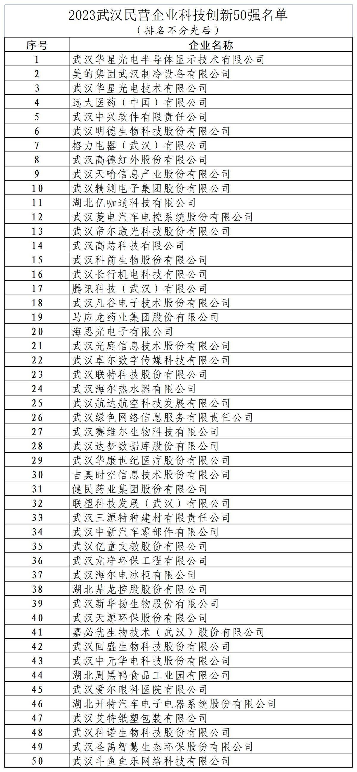 创新热潮持续涌动,助力武汉高质量发展,今年,武汉首次发布新榜单——“武汉民营企业科技创新50强”。